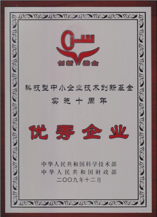 在科技部和財政部召開的科技型中小企業(yè)技術(shù)創(chuàng)新基金實施十周年總結(jié)大會上,我公司被授予“全國科技型中小企業(yè)技術(shù)創(chuàng)新基金工作優(yōu)秀企業(yè)”榮譽稱號。
