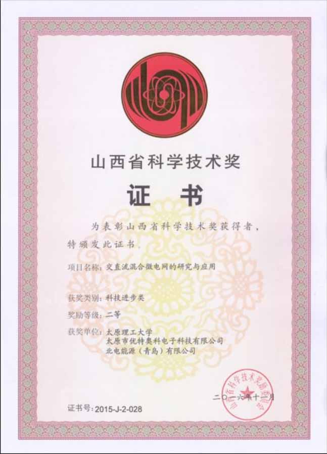 我公司與太原理工大學(xué)建立了長期的產(chǎn)學(xué)研合作機(jī)制,合作完成了國家國際科技合作項(xiàng)目“含分布式電源的微電網(wǎng)運(yùn)行與優(yōu)化控制的合作研究”,其成果“交直流混合微電網(wǎng)的研究與應(yīng)用”經(jīng)山西省科技廳組織鑒定,專家意見為具有國際先進(jìn)技術(shù)水平。并獲得了2015年度山西省科技進(jìn)步二等獎(jiǎng)。