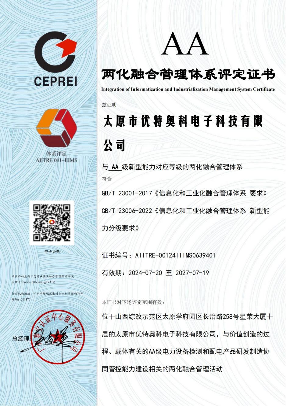 近日,我公司正式獲得兩化融合管理體系A(chǔ)A級評定證書,標(biāo)志著在信息化與工業(yè)化融合方面取得顯著進(jìn)展。此次評定嚴(yán)格按照國家標(biāo)準(zhǔn),歷經(jīng)多個環(huán)節(jié),最終順利達(dá)標(biāo)。